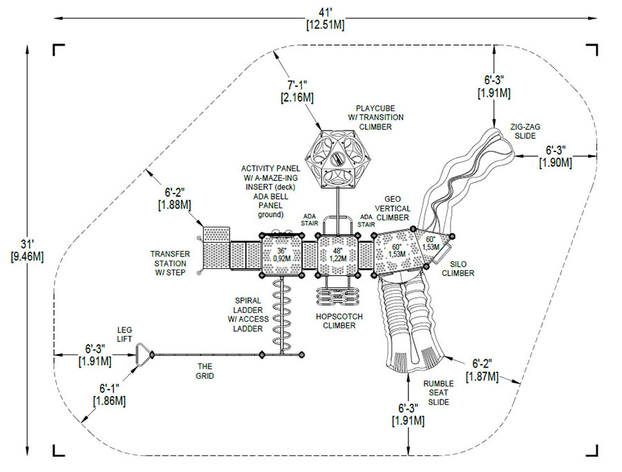 Χώρος ασφαλείας μήκος : 9450 mm