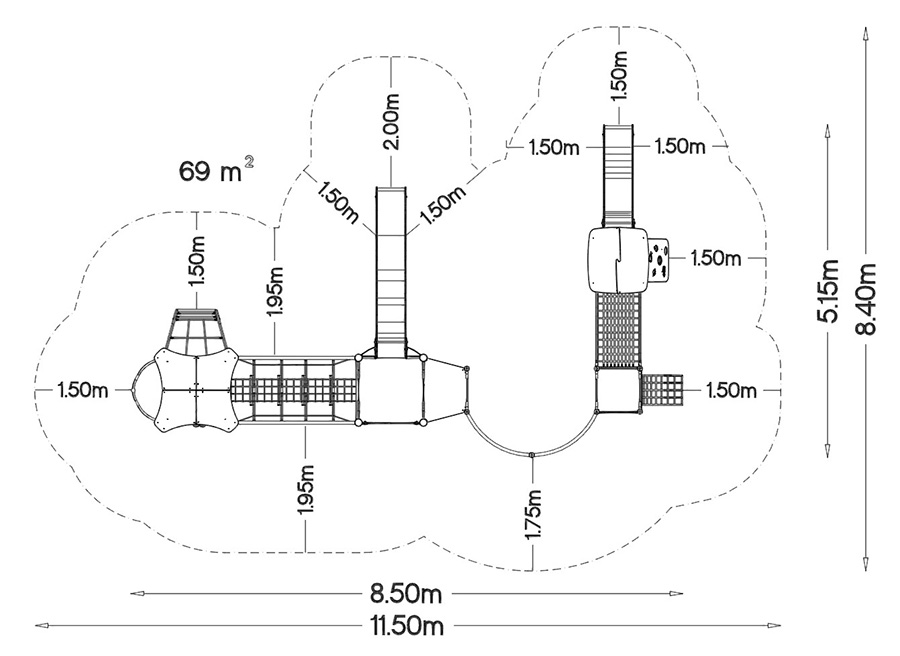 Χώρος ασφαλείας μήκος : 11500 mm