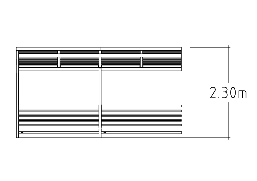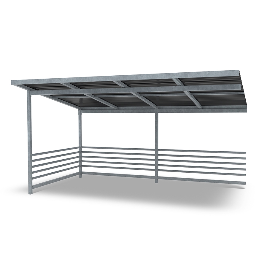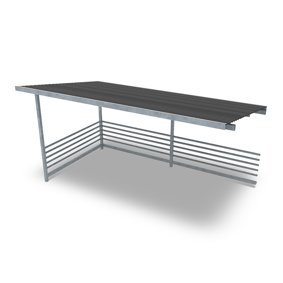 Επεκτείνετε το στέγαστρο ποδηλάτων Capella για να δημιουργήσετε χώρο για ακόμη περισσότερα ποδήλατα ή χρησιμοποιήστε τον χώρο ως στέγαστρο για καρότσια ή ως σταθμό διαλογής απορριμμάτων. Αυτή η παραλλαγή διαθέτει ίσια οροφή από κασσίτερο.
