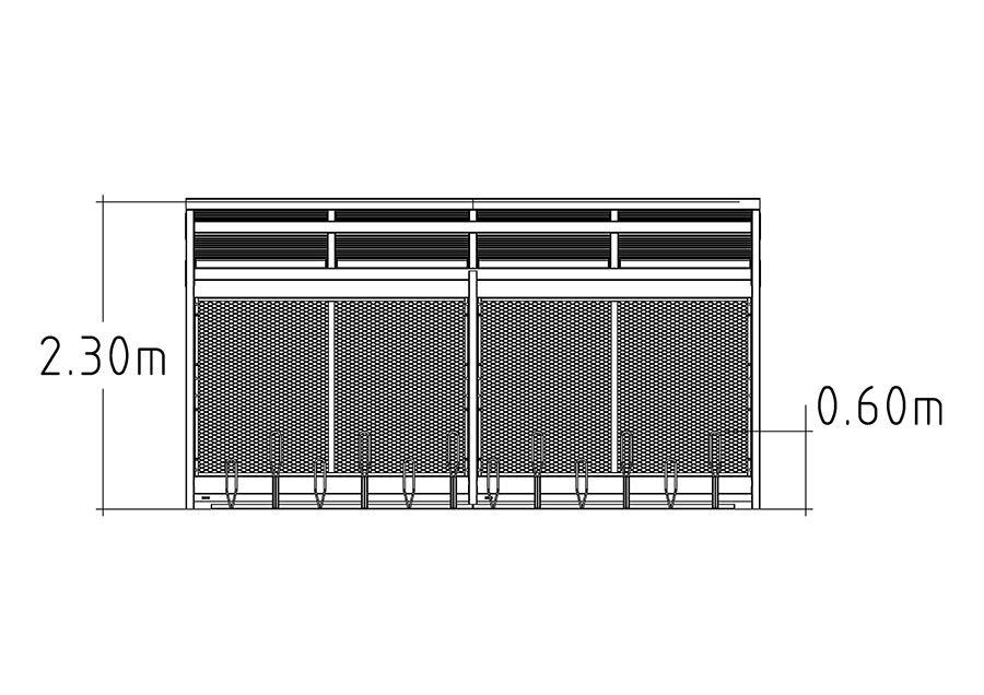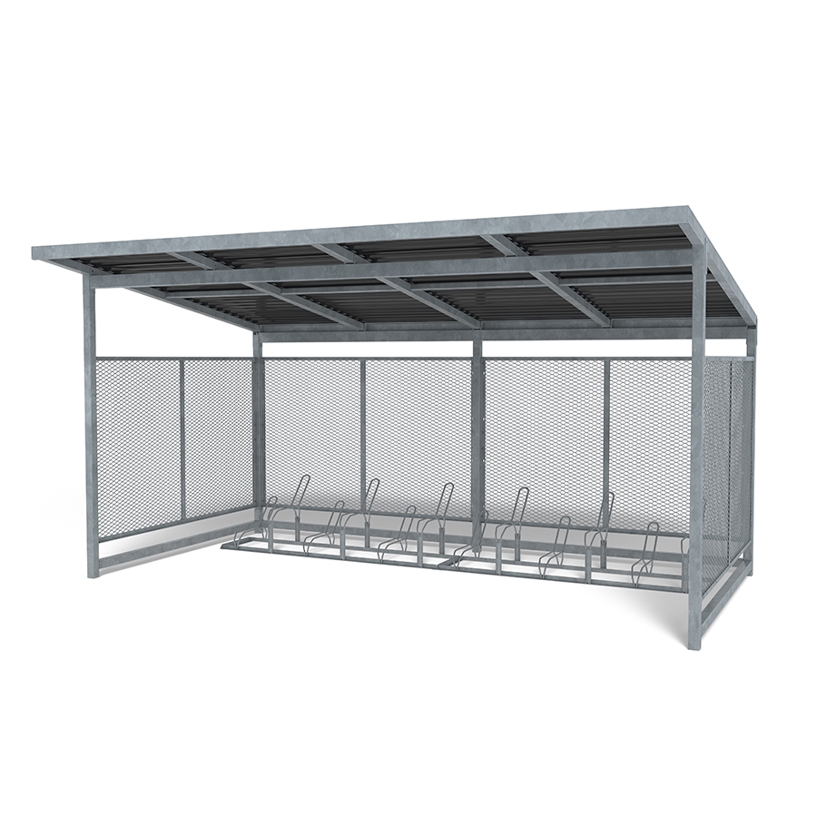 Η στέγη ποδηλάτων Nova με 2 σχάρες ποδηλάτων Gemini προσφέρει μια κομψή, ανθεκτική λύση για ασφαλή αποθήκευση ποδηλάτων σε εξωτερικούς χώρους. Κατασκευασμένη με γαλβανισμένους στύλους από χάλυβα, διαφανή πάνελ και στιβαρή οροφή, η στέγη Nova προστατεύει από τα στοιχεία της φύσης, εξασφαλίζοντας παράλληλα ορατότητα και εύκολη πρόσβαση. Ιδανική για σχολεία, πάρκα, κατοικημένες περιοχές και δημόσιους χώρους, μπορεί επίσης να χρησιμεύσει ως στέγη καροτσιού ή σταθμός διαλογής απορριμμάτων. Η κατασκευή είναι εύκολη στην εγκατάσταση, επεκτάσιμη με κιτ επέκτασης και διατίθεται με προαιρετικές .πόρτες με κλειδί για πρόσθετη ασφάλεια. Σε συνδυασμό με δύο ανεξάρτητες, γαλβανισμένες σχάρες Gemini - η καθεμία χωράει έξι ποδήλατα - παρέχει οργανωμένο χώρο στάθμευσης για έως και 12 ποδήλατα. Αυτή η παραλλαγή διαθέτει ίσια οροφή από κασσίτερο .