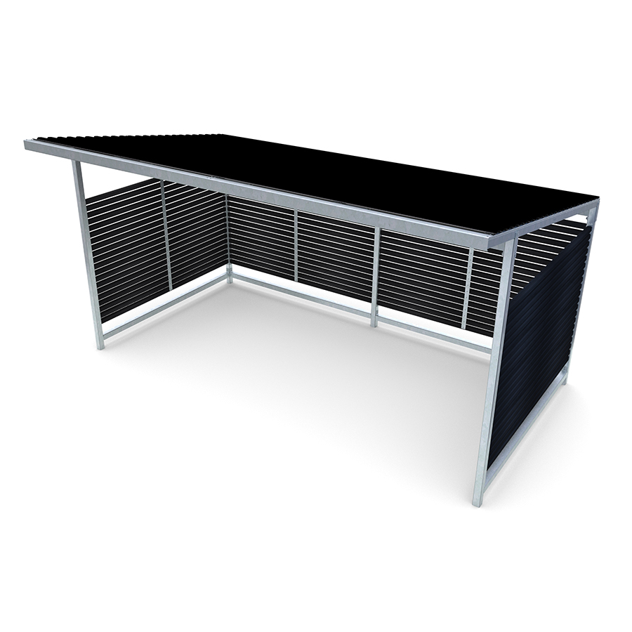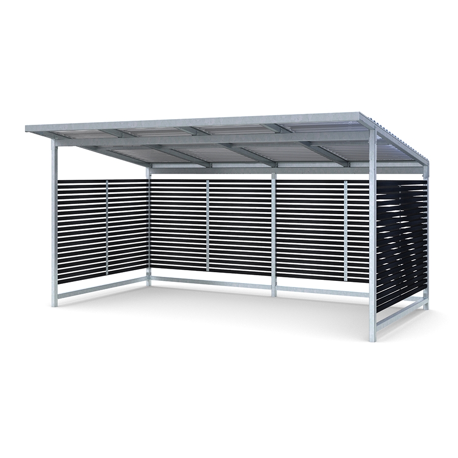 Η στέγη ποδηλάτων Stella είναι μια ευέλικτη και κομψή λύση αποθήκευσης που συμπληρώνει τόσο τα κλασικά όσο και τα μοντέρνα περιβάλλοντα. Κατασκευασμένη με μαύρες ξύλινες σανίδες από σκανδιναβικό πεύκο, ενσωματώνεται άψογα σε διάφορους χώρους. Οι σανίδες μπορούν να βαφτούν σε οποιοδήποτε προσαρμοσμένο χρώμα για να αντανακλούν την αρχιτεκτονική του περιβάλλοντος. Διαθέσιμη με ευθεία ή θολωτή οροφή από κυματοειδές μέταλλο ή πλαστικό, η Stella φιλοξενεί έως και δώδεκα ποδήλατα και μπορεί να επεκταθεί με κιτ επέκτασης για να καλύψει μεγαλύτερες ανάγκες. Σας προτείνουμε να προσθέσετε 2 σχάρες ποδηλάτων Gemini (8003537) για να χωρέσουν 12 ποδήλατα. Τα προαιρετικά χαρακτηριστικά περιλαμβάνουν πόρτες με κλειδί και σχάρες ποδηλάτων, καθιστώντας τη Stella ιδανική όχι μόνο για αποθήκευση ποδηλάτων, αλλά και ως πάρκο για καροτσάκια ή σταθμό διαλογής απορριμμάτων. Αυτή η παραλλαγή διαθέτει ίσια οροφή από κασσίτερο.
