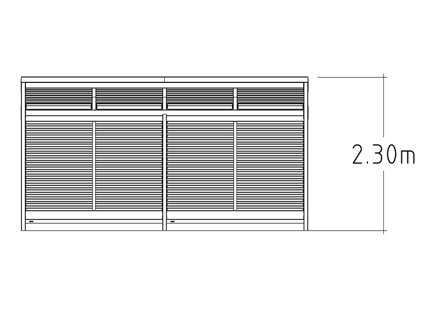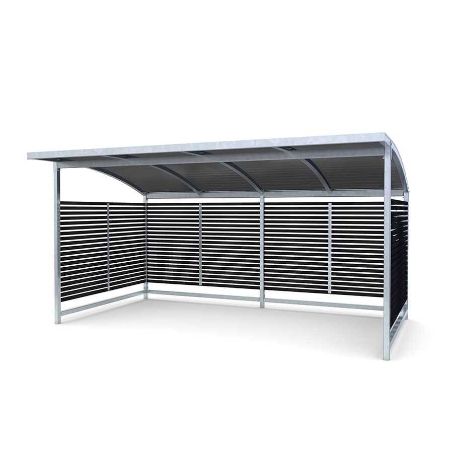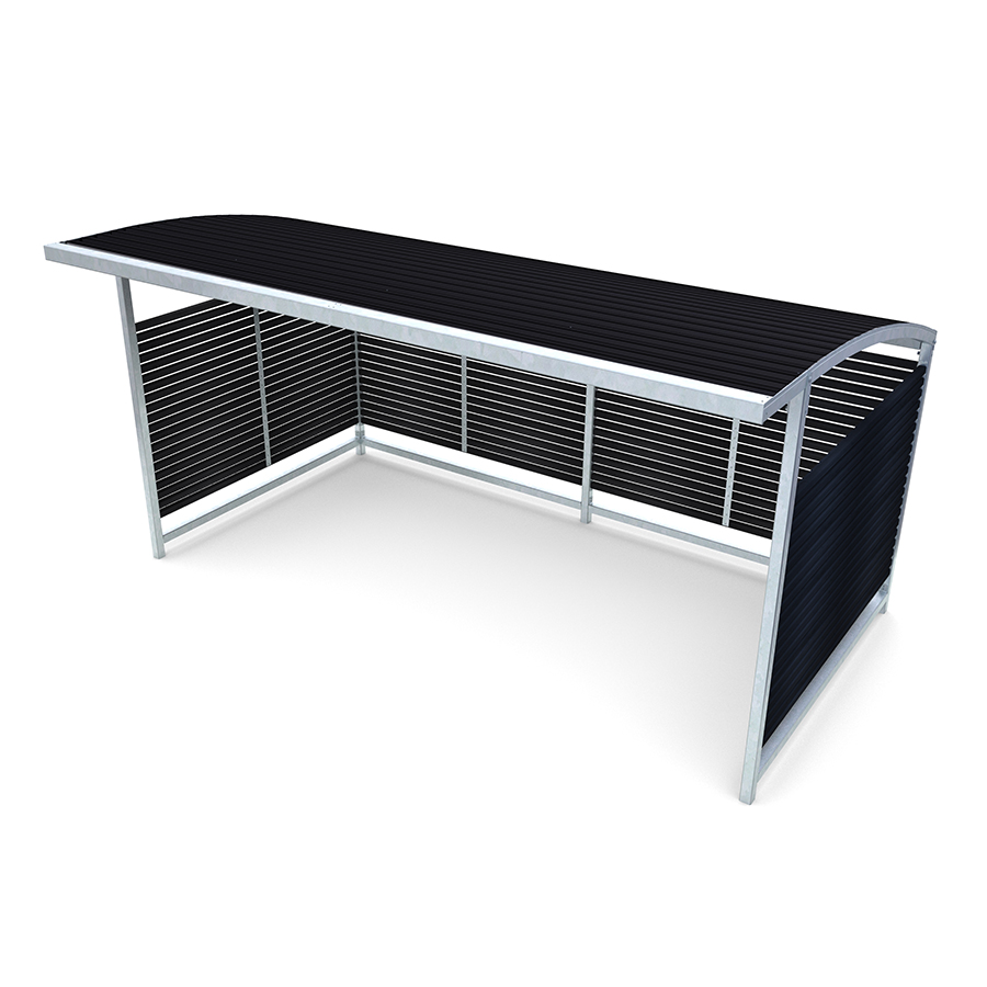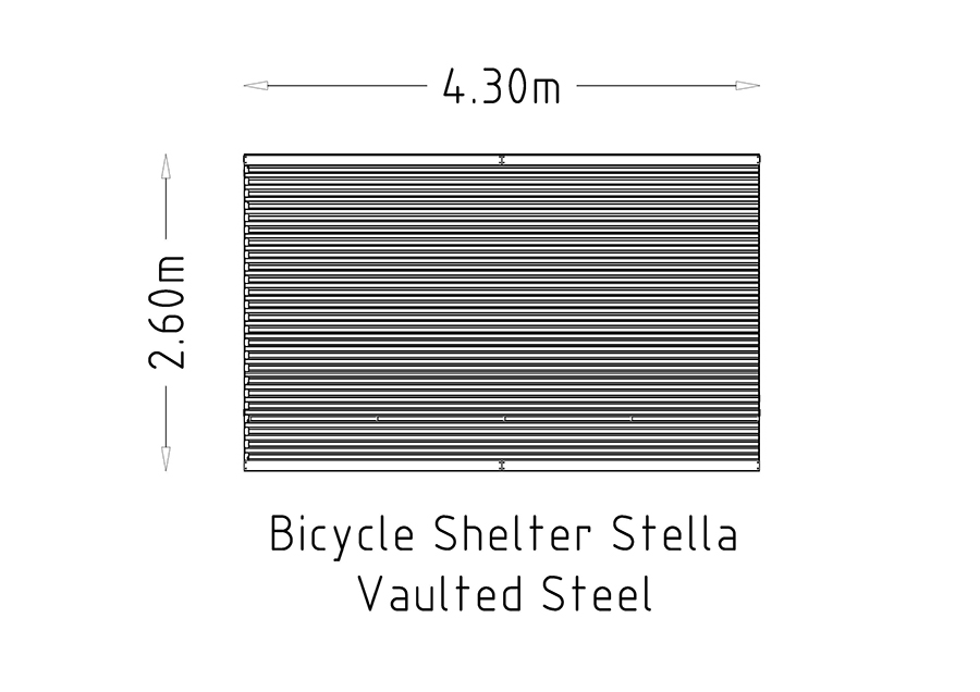 Η στέγη ποδηλάτων Stella είναι μια ευέλικτη και κομψή λύση αποθήκευσης που συμπληρώνει τόσο τα κλασικά όσο και τα μοντέρνα περιβάλλοντα. Κατασκευασμένη με μαύρες ξύλινες σανίδες από σκανδιναβικό πεύκο, ενσωματώνεται άψογα σε διάφορους χώρους. Οι σανίδες μπορούν να βαφτούν σε οποιοδήποτε προσαρμοσμένο χρώμα για να αντανακλούν την αρχιτεκτονική του περιβάλλοντος. Διαθέσιμη με ευθεία ή θολωτή οροφή από κυματοειδές μέταλλο ή πλαστικό, η Stella φιλοξενεί έως και δώδεκα ποδήλατα και μπορεί να επεκταθεί με κιτ επέκτασης για να καλύψει μεγαλύτερες ανάγκες. Σας προτείνουμε να προσθέσετε 2 σχάρες ποδηλάτων Gemini (8003537) για να χωρέσουν 12 ποδήλατα. Τα προαιρετικά χαρακτηριστικά περιλαμβάνουν πόρτες με κλειδί και σχάρες ποδηλάτων, καθιστώντας τη Stella ιδανική όχι μόνο για αποθήκευση ποδηλάτων, αλλά και ως πάρκο για καροτσάκια ή σταθμό διαλογής απορριμμάτων. Αυτή η παραλλαγή διαθέτει καμπυλωτή οροφή από κασσίτερο.