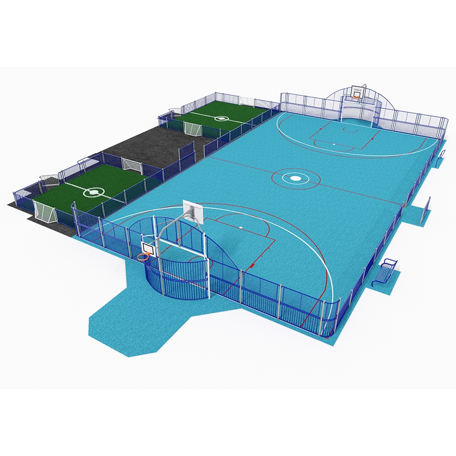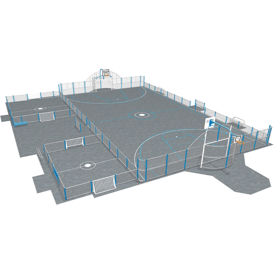 Το San Francisco Arena είναι ένα μεγάλο πολύ-αθλητικό γήπεδο 28x16 μ., σχεδιασμένο για να φέρνει κοντά τις κοινότητες. Διαθέτει πλαϊνά πάνελ ύψους 1 μέτρου, εισόδους με σικέιν και πάνελ ύψους 2 μέτρων με ενσωματωμένα τέρματα και μπασκέτες . Το στάδιο περιλαμβάνει επίσης δύο μίνι γήπεδα 6x8 μ. με μίνι τέρματα, ιδανικά για μικρότερα παιχνίδια. Καθίσματα θεατών περιβάλλουν την εγκατάσταση, επιτρέποντας σε φίλους και συγγενείς να απολαύσουν τον ενθουσιασμό. Ιδανικό για διάφορα αθλήματα με μπάλα, το San Francisco Arena παρέχει έναν ενιαίο χώρο για άτομα όλων των ηλικιών να συγκεντρώνονται, να παίζουν και να απολαμβάνουν σωματική δραστηριότητα χωρίς κόστος.